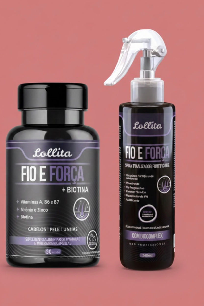 Cápsulas de vitamina + spray fortificante fio força 500g